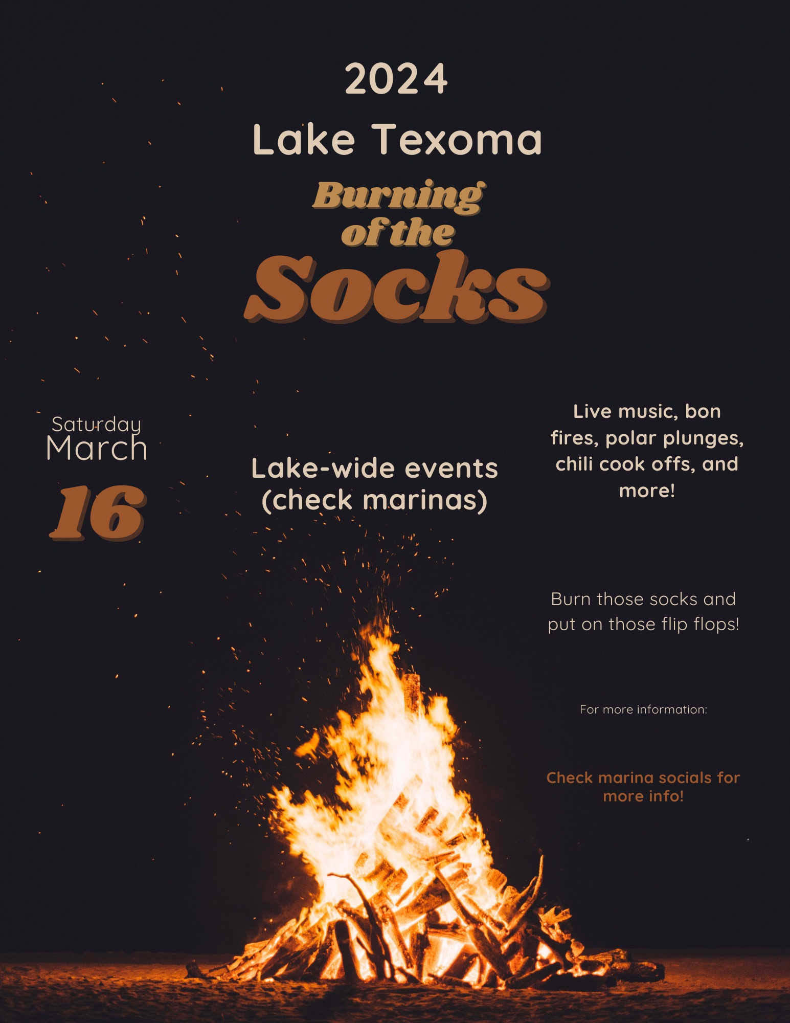 Burning of the Socks events lake-wide! Check marina socials for info! Different events at different marinas.
